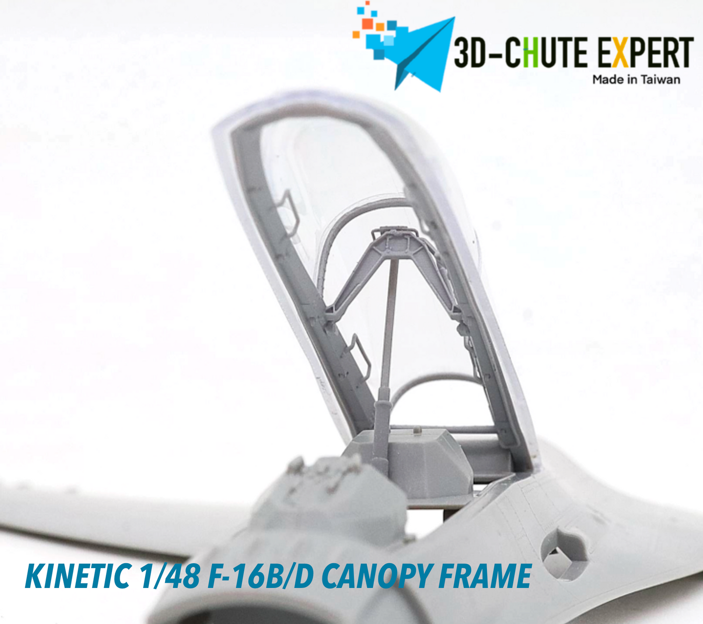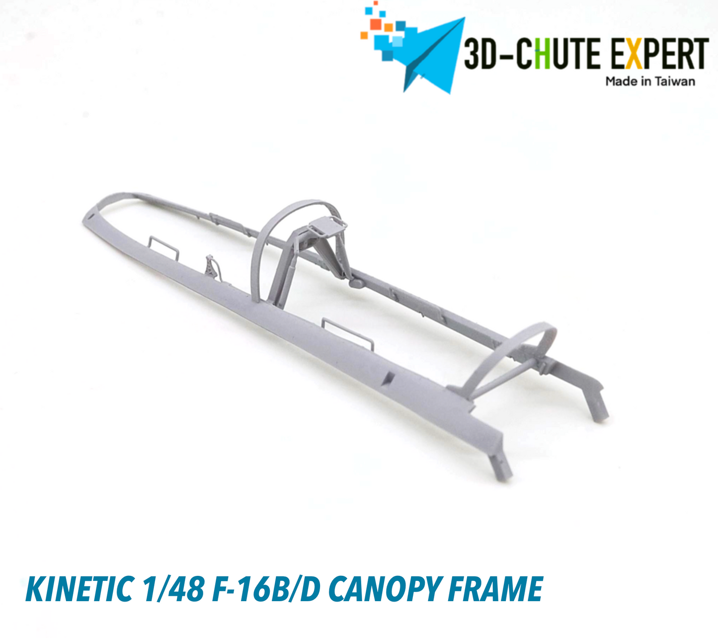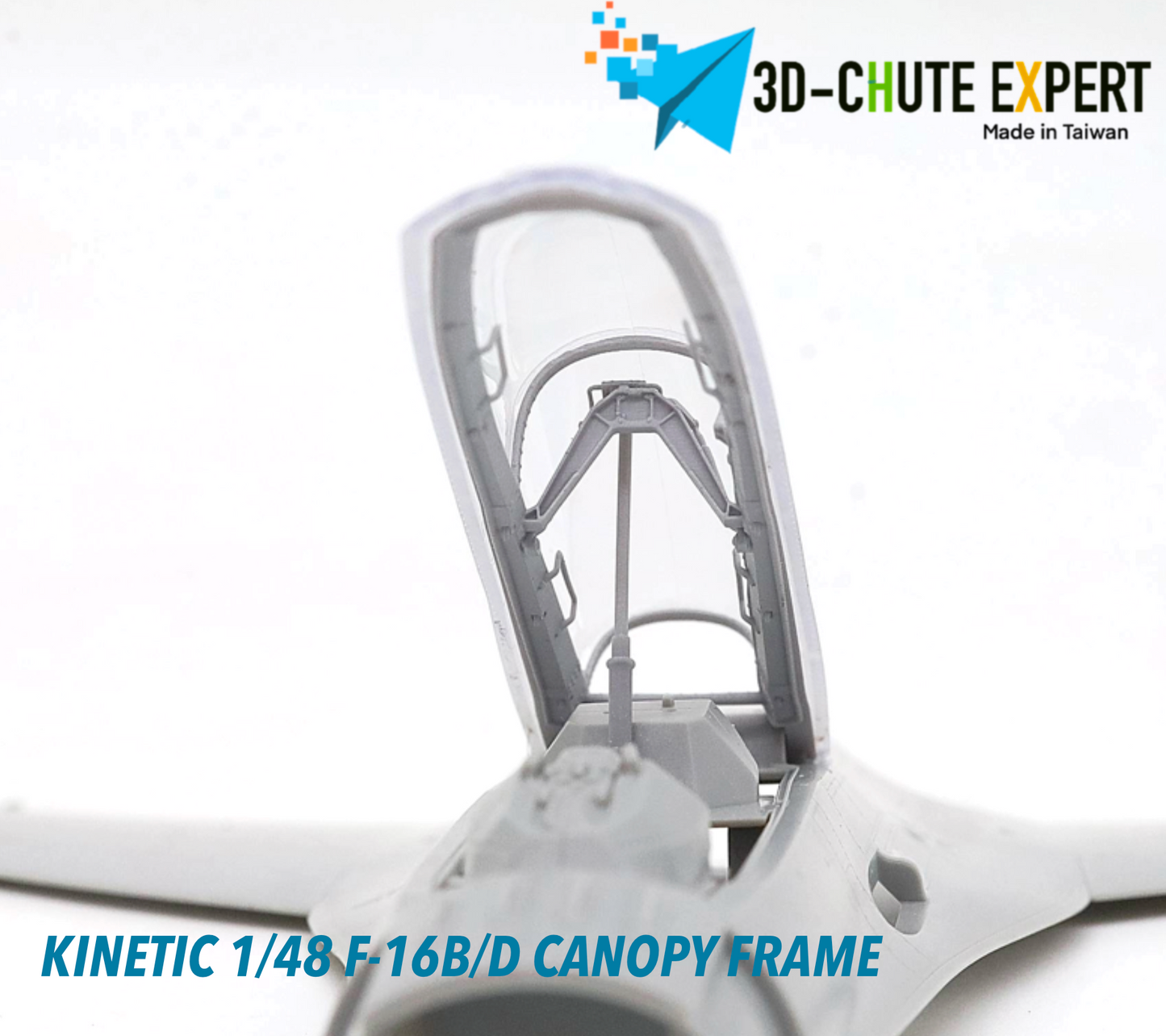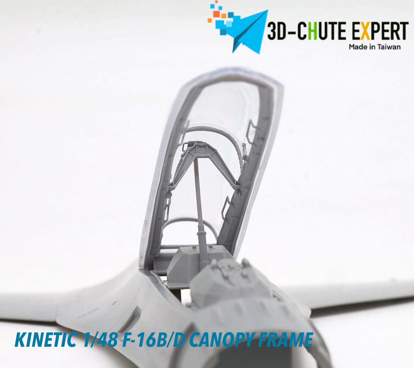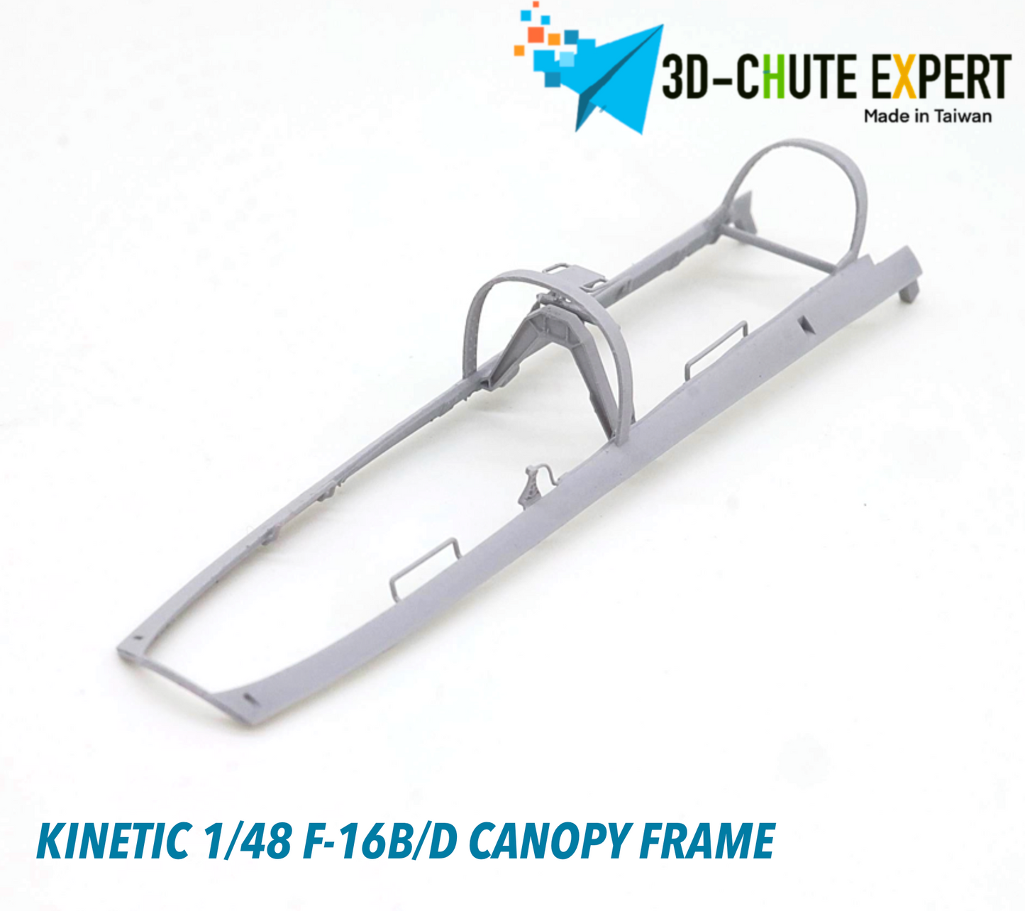 The Kinetic New Gold 1/48 F-16B/D open canopy frame is crafted using advanced all-in-one 3D printing technology for exceptional precision and durability. Featuring an easy-remove bracket, it simplifies assembly while enhancing display flexibility. Designed for expert modelers, this canopy frame can be combined with other kits to elevate the realism and detail of your F-16B/D model.