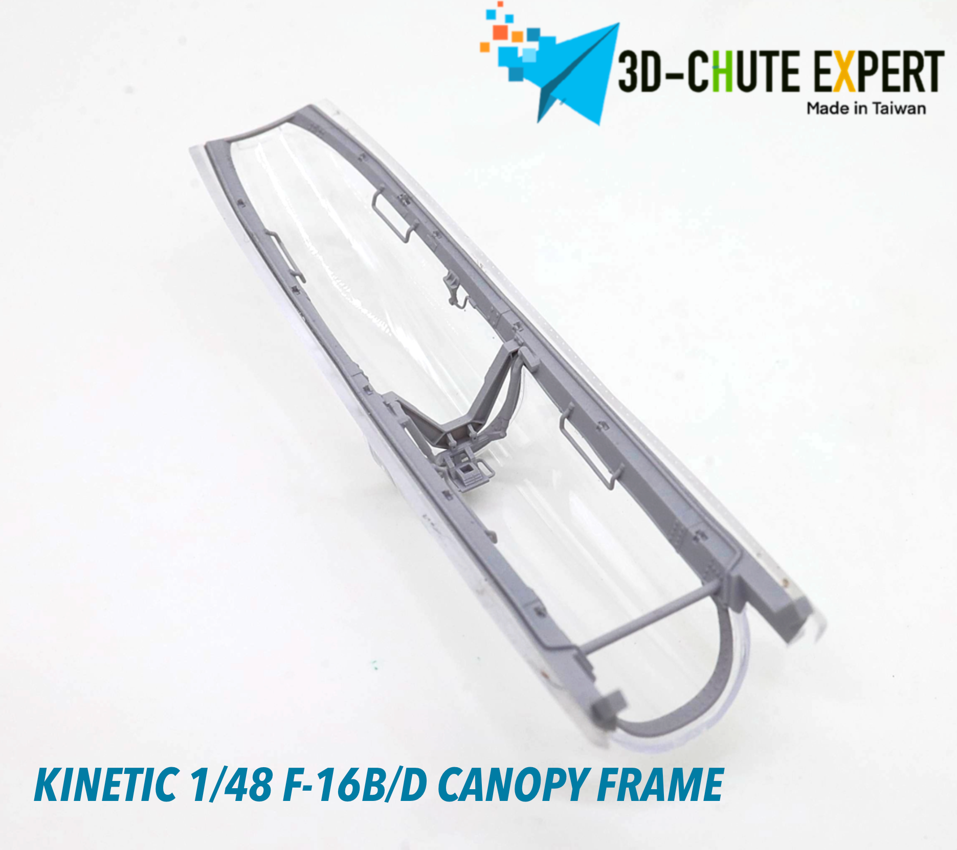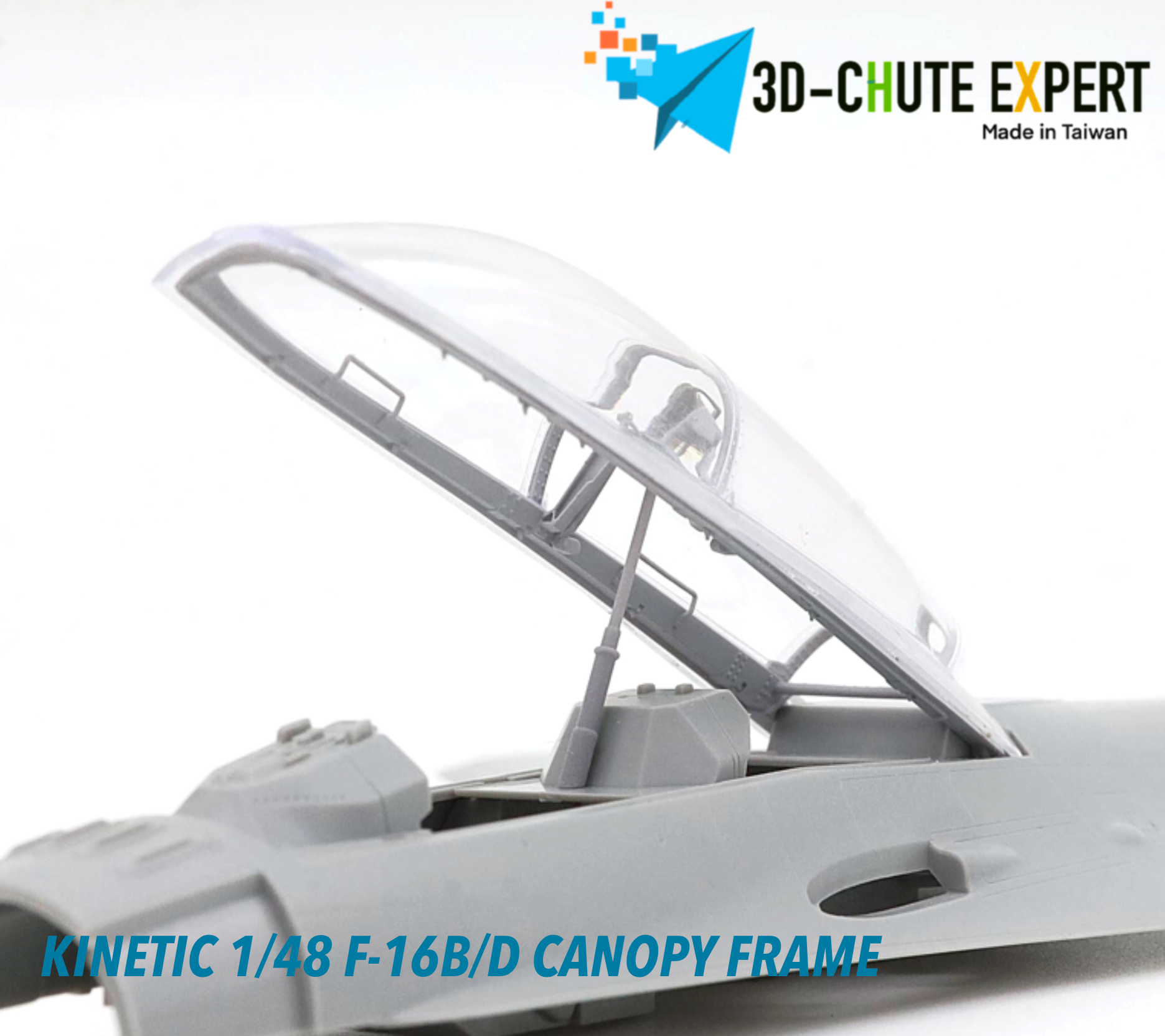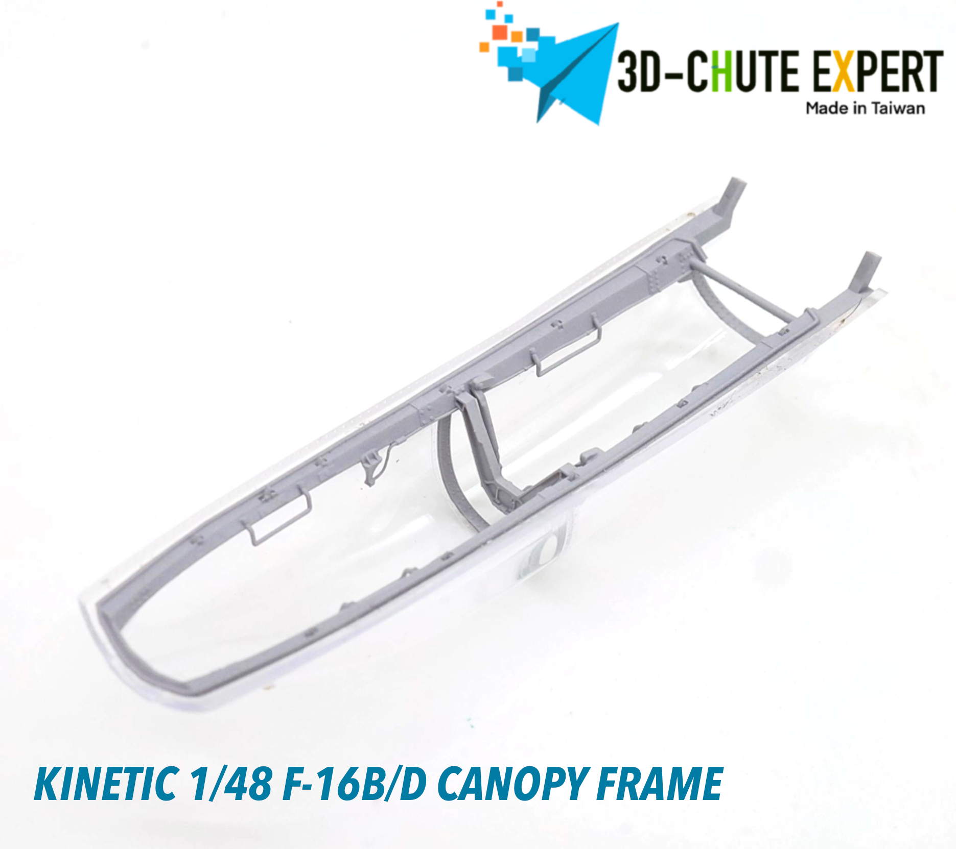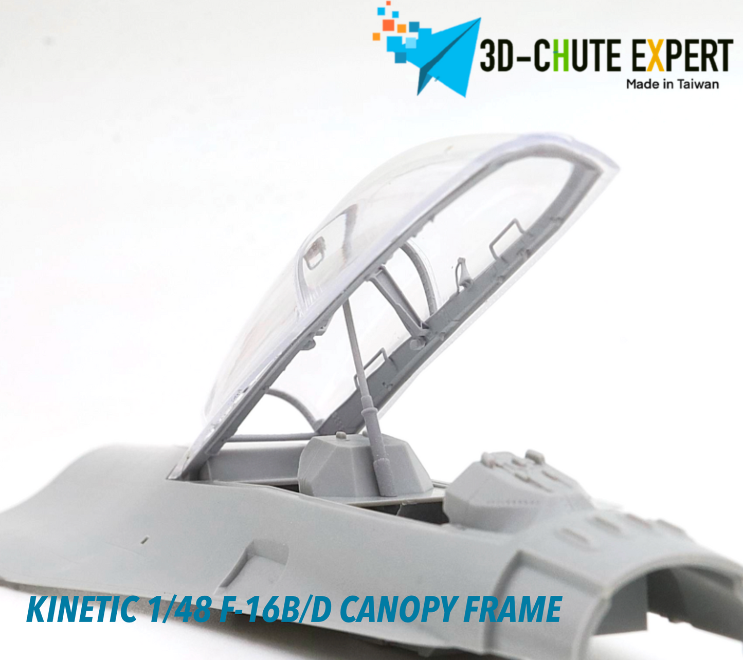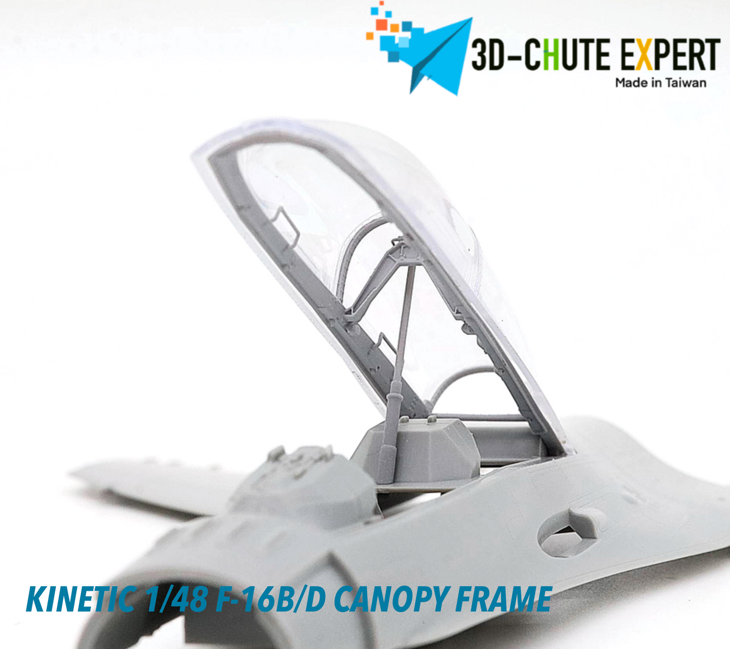 The Kinetic New Gold 1/48 F-16B/D open canopy frame is crafted using advanced all-in-one 3D printing technology for exceptional precision and durability. Featuring an easy-remove bracket, it simplifies assembly while enhancing display flexibility. Designed for expert modelers, this canopy frame can be combined with other kits to elevate the realism and detail of your F-16B/D model.